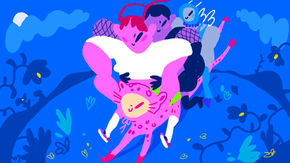I envisioned a simple narrative with a focus on fun, magical, and energetic visuals. Three friends are riding a pink cheetah that vigorously carries them away from the patriarchal past and proceeds with running through the lush, free, jungle-like magical world – into the fabulous feminist future. I wanted to convey a diversity of various shapes, colors, and even life forms through the three friends and other female characters in the animation (you can spot aliens, mermaids, and fairies…). With this animation, I wanted to appropriately reference the IWD's broad subject matter and express my own vision while adhering to the wild and experimental style of earlier MTV idents.
